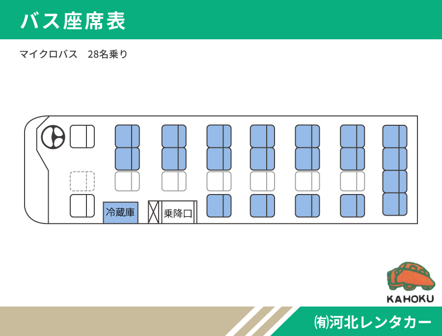 | 車内設備 | 全車AT車/カーナビ/ETC/冷蔵庫 ※冷蔵庫の無い車両は29名乗り |
